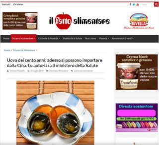 (圖為意大利權(quán)威媒體刊載準(zhǔn)許從中國進(jìn)口皮蛋的新聞)